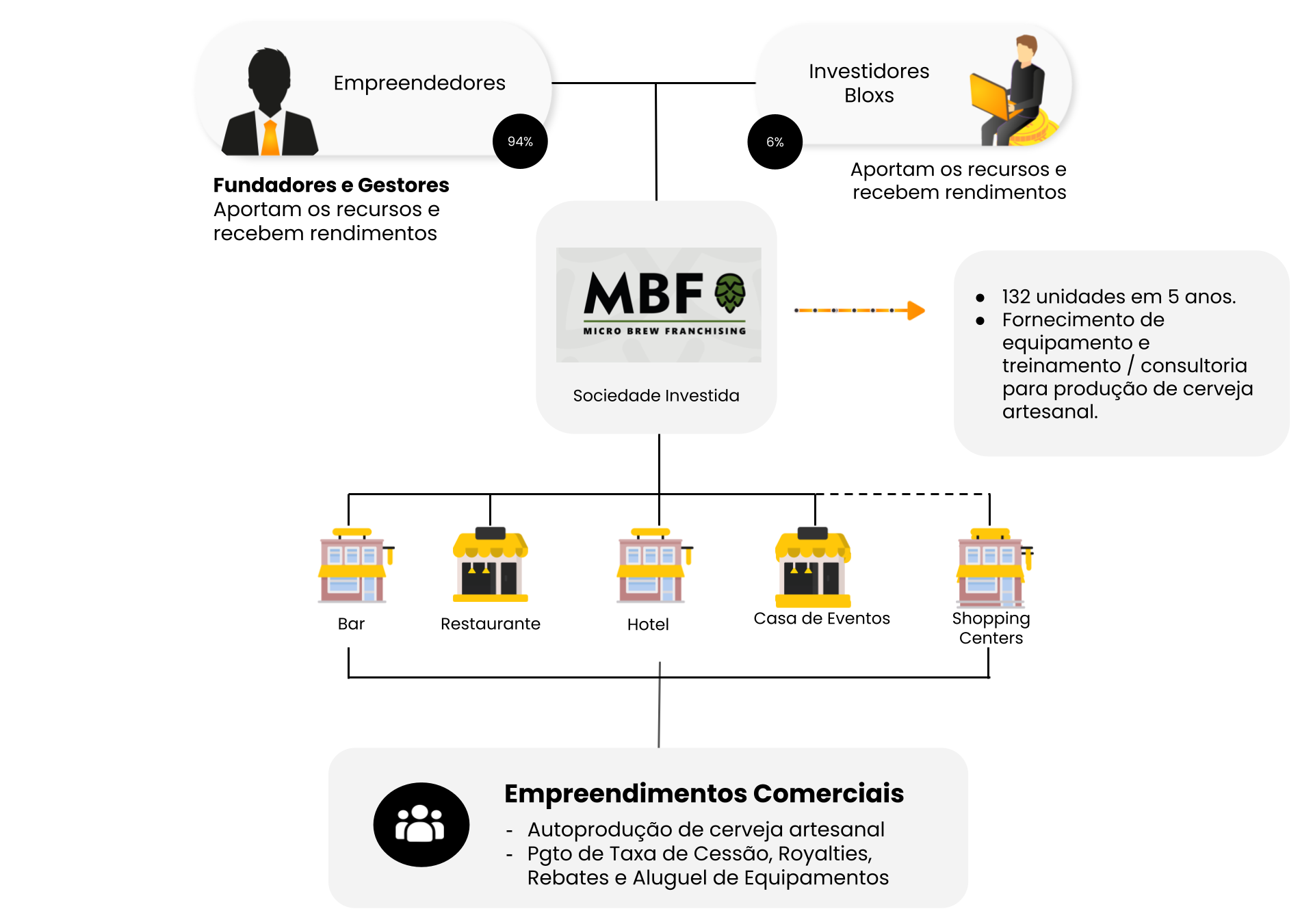- A Sociedade Investida é a Micro Brew Franchising, que visa oferecer a estabelecimentos comerciais a partir de 25m2 a capacidade de autoprodução de cerveja do tipo puro malte, de marca própria (“white label”), com maior diversidade de produtos, maior qualidade da cerveja produzida e maior lucratividade, devido ao menor custo de produção versus o preço de aquisição por distribuidoras.