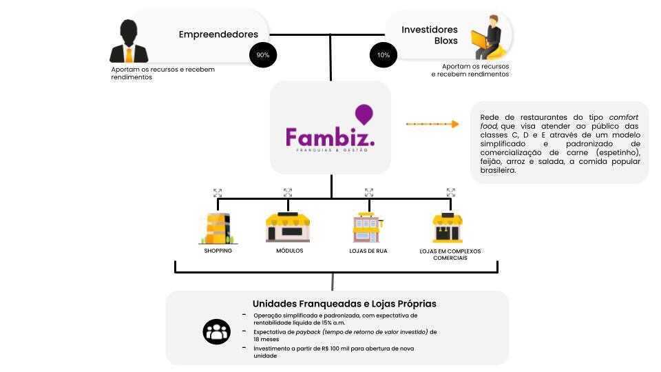 - A FAMBIZ FRANQUIAS E GESTÃO LTDA é responsável pela administração da Rede de Franquias “ESPETINHO BOM”, atuando na qualidade de franqueadora e concedendo a terceiros o direito de integrar a rede de franquias.